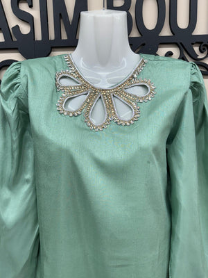 • Beautiful Embroidered Necklace Design with Patchwork on the neckline