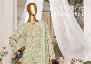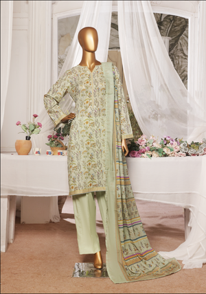 Add a refreshing touch to your wardrobe with this 3-Piece Pista Green Printed Lawn Stitched Suit, a perfect blend of soothing tones and sophisticated style. Ideal for casual days, office wear, or light gatherings, this outfit offers breathable comfort with graceful flair.