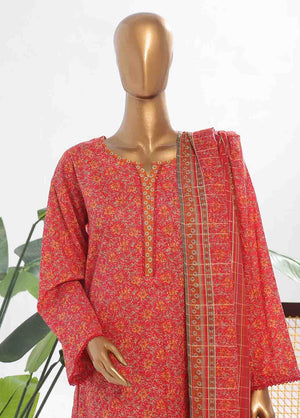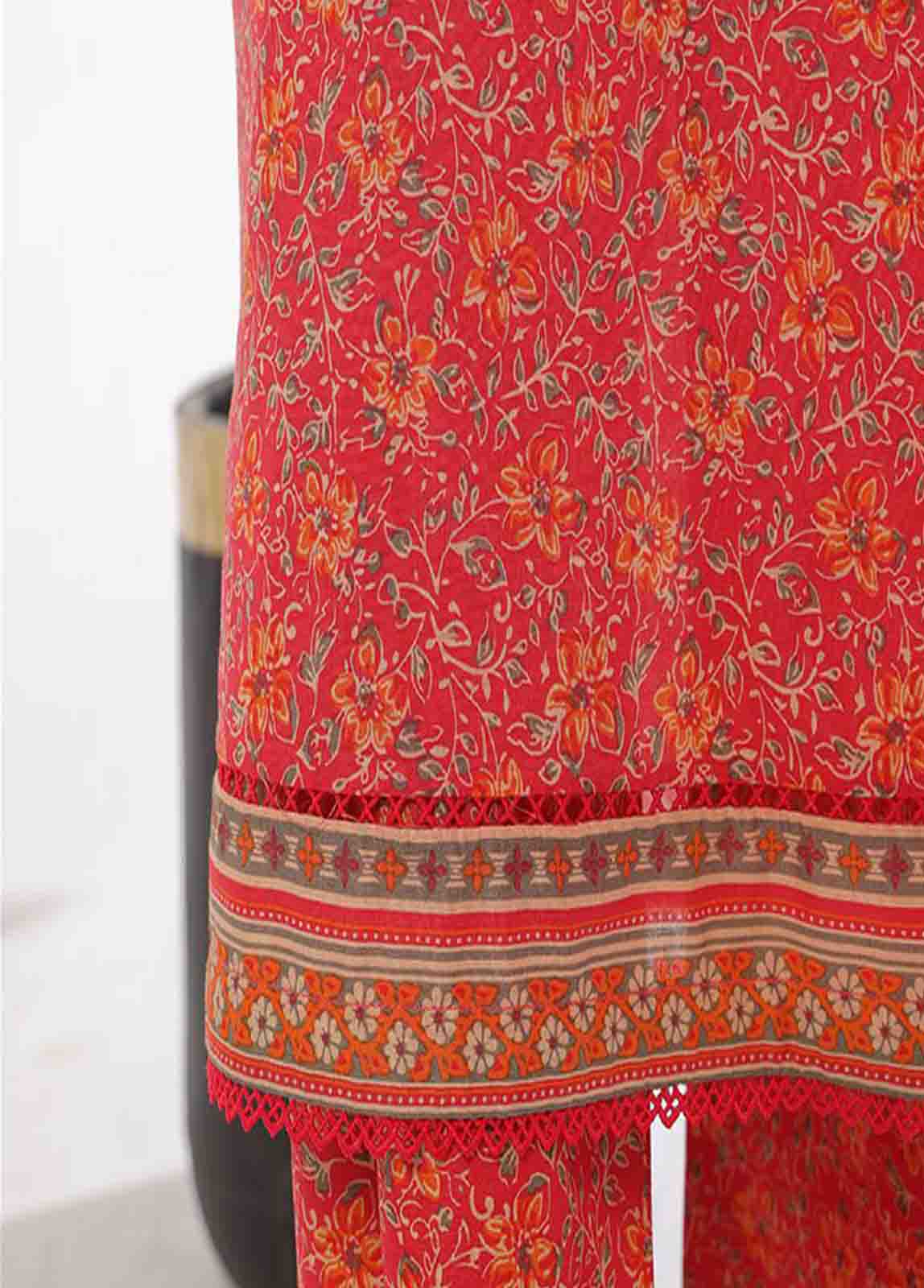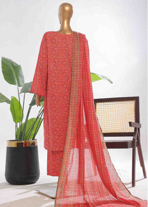 3-Piece Original Bin Saeed Red Printed Lawn Stitched Suit with Lawn Dupatta & Printed Trouser