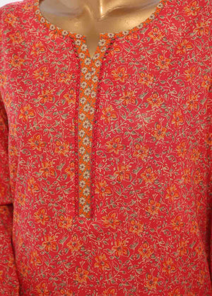 ✔️ Red Printed Lawn Shirt (Stitched)
