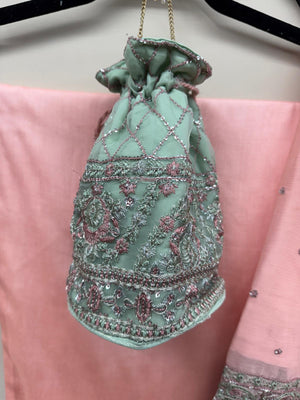 Chiffon Embroidered 4Pc Formal Dress with Potli Bag