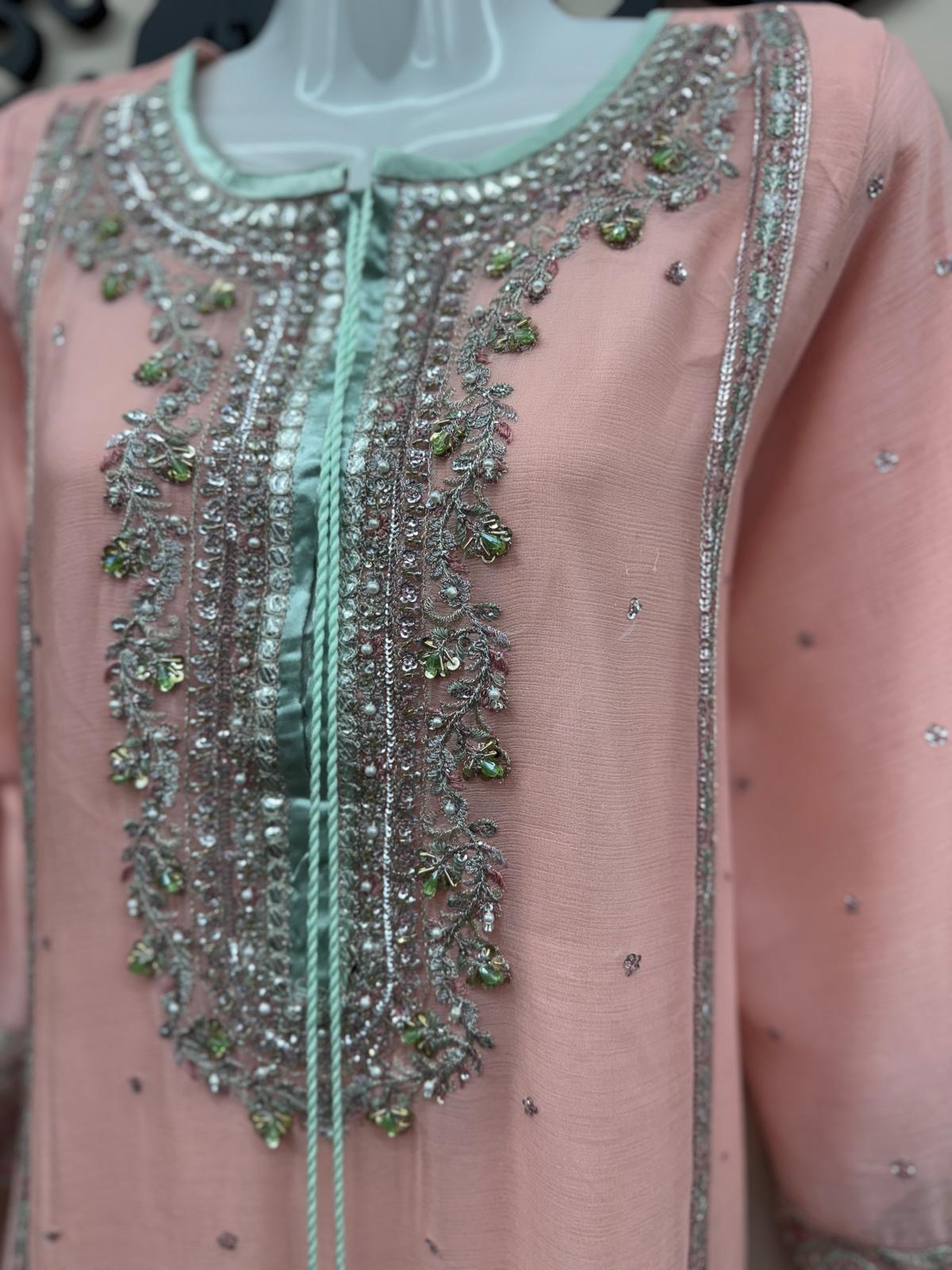 Embroidered Neckline with Hand Embellished Beads & Sequins