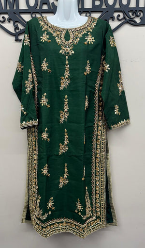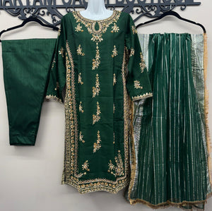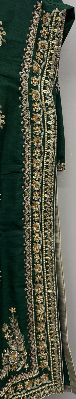 levate your formal wardrobe with this luxurious 3-piece Katten silk outfit, designed for elegance and grace. This premium ensemble features fully hand-embroidered detailing, perfect for special occasions and festive gatherings.