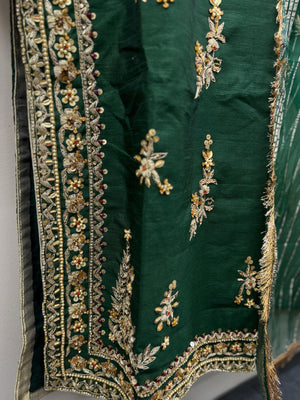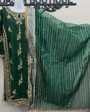Luxury 3-Piece Katten Silk Outfit – Zari Handwork with Dupatta