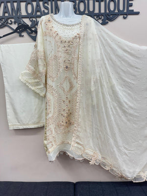 Step into elegance with this MariaB-inspired 3-piece luxury formal outfit, featuring delicate craftsmanship and premium fabric: