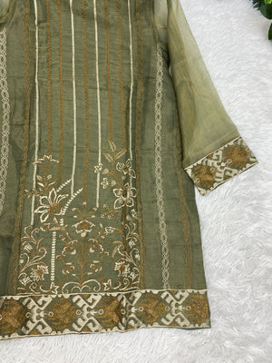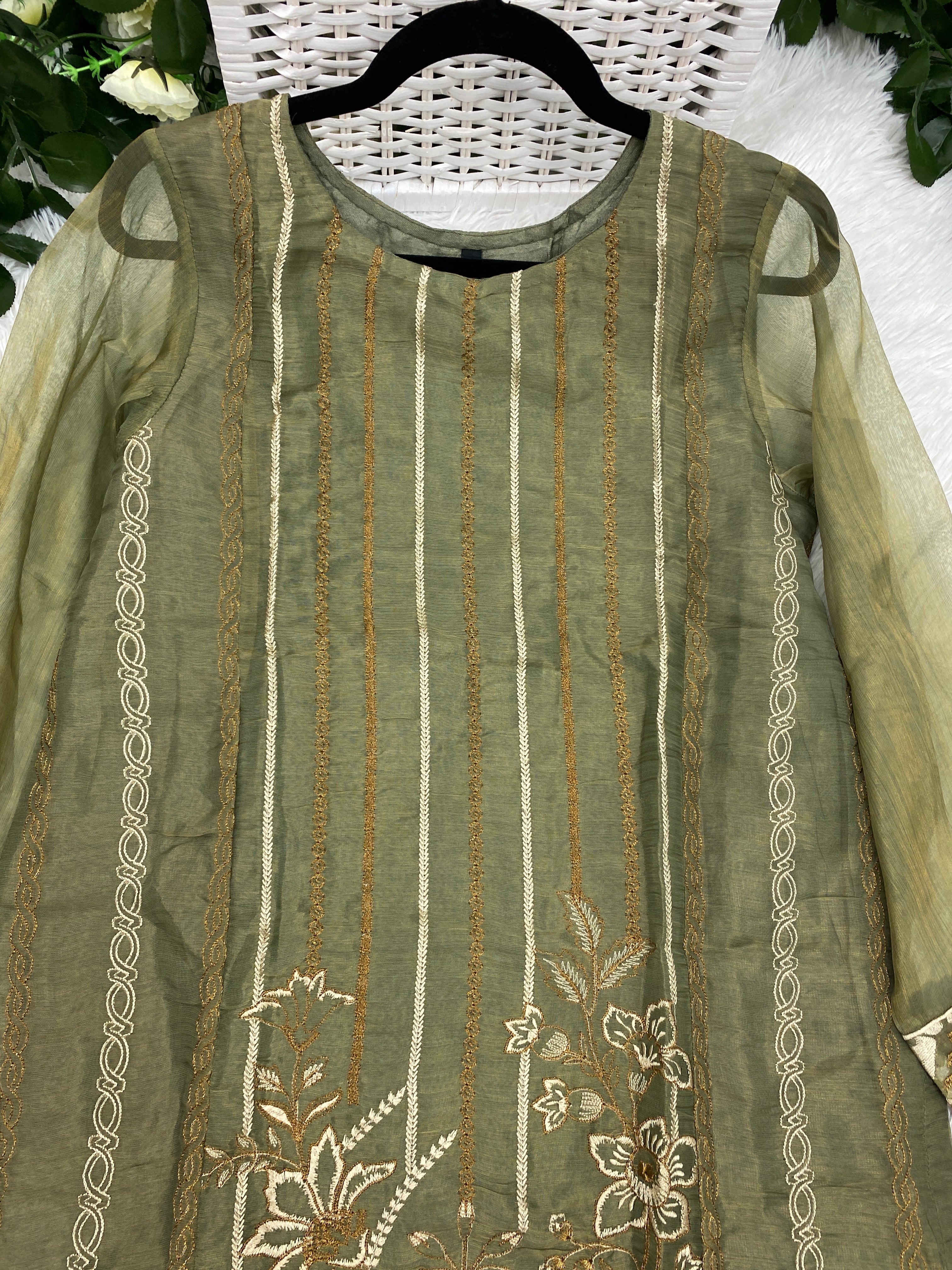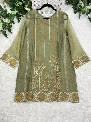 Warda Formal Masoori Silk Top with embroidery in Medium: Chest 21" and Length 36"