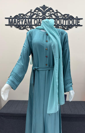 Crinkle Chiffon Belted Abaya with Matching Hijab