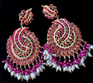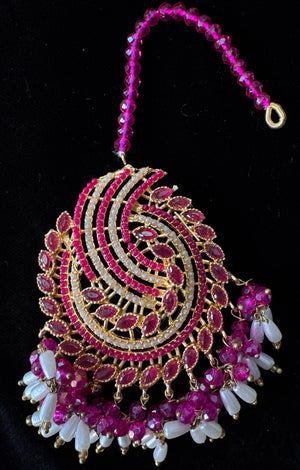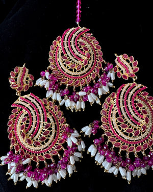 Enhance your traditional look with this stunning earrings and tika set, designed with beautiful red stones and white pearls for a timeless and elegant touch. Perfect for weddings, festive occasions, and special events, this set adds a graceful charm to any outfit.