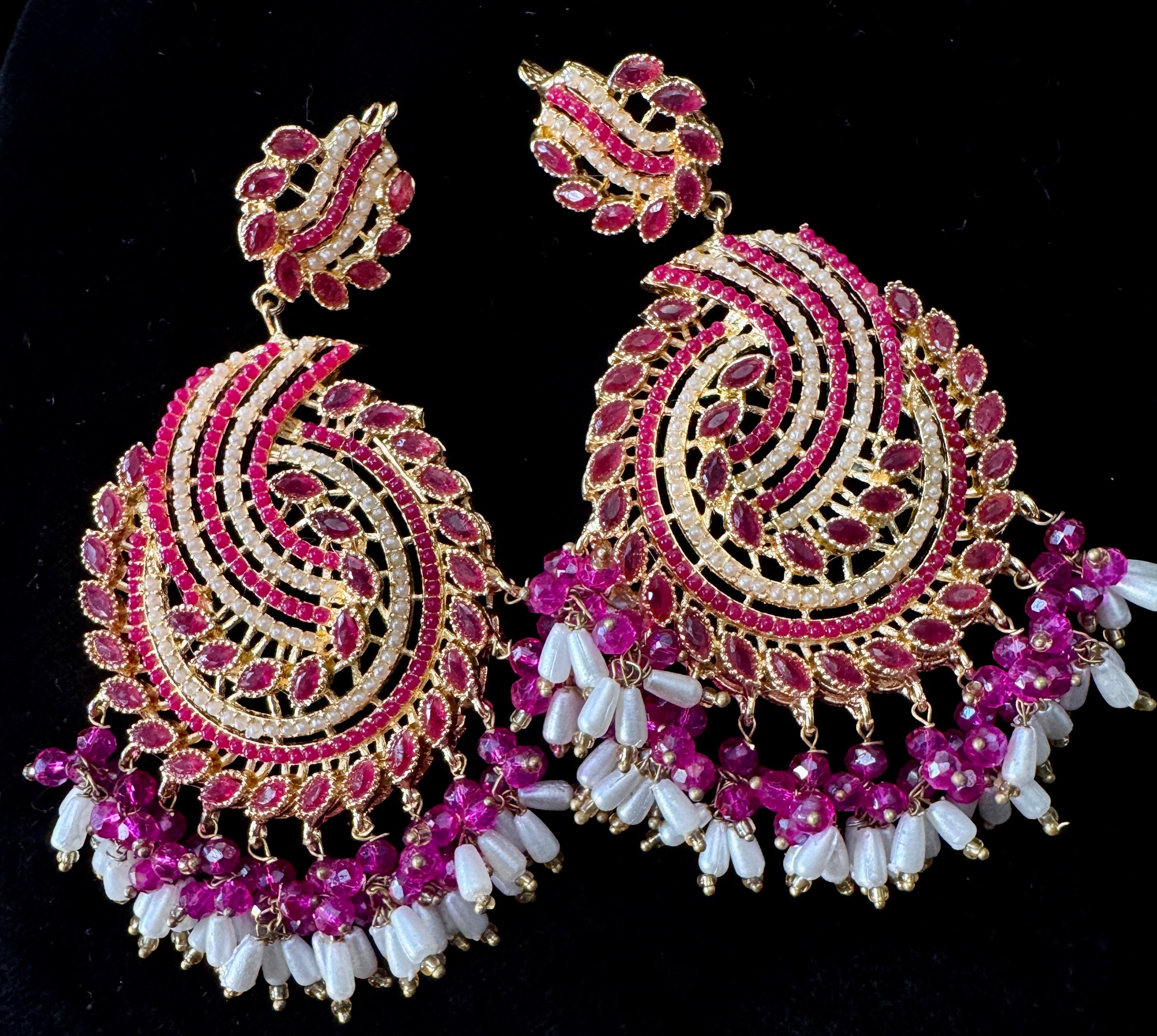 💎 Earrings – Intricately designed with red stones and delicate white pearls.
