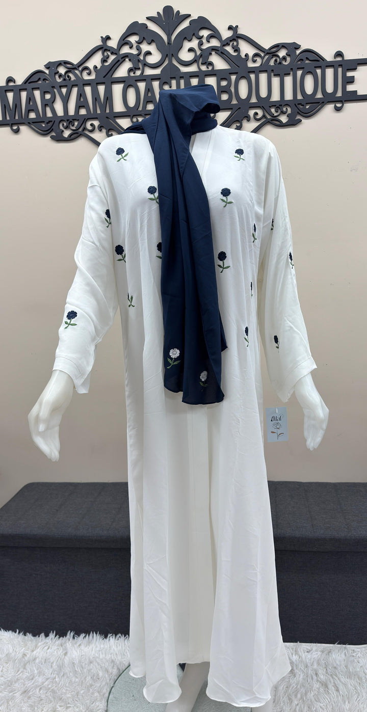 Each set includes a front-open embroidered abaya, a matching hijab, and a white niqab, giving you a complete 3-piece modest wear look. Perfect for daily wear, gatherings, events, or Islamic occasions.