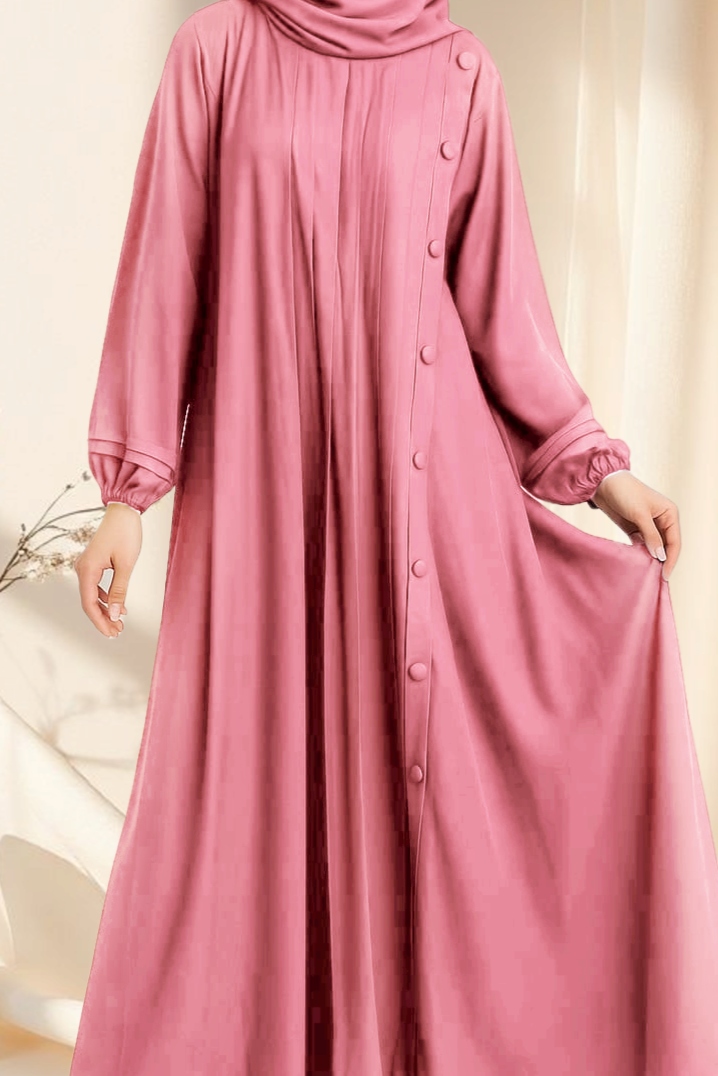 Bring effortless elegance to your modest wardrobe with this Beautiful Pleated Abaya featuring button detailing. Designed with a graceful fall and structured pleats, it offers both comfort and sophistication for daily wear or special occasions. The side-button design adds a subtle touch of style while maintaining a modest silhouette.