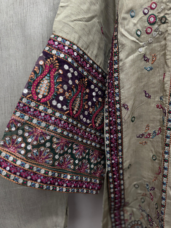 Original Zarqun Beige Embroidered 3-Piece mesori silk Kurta Set for Women | Ready-to-Wear Outfit
