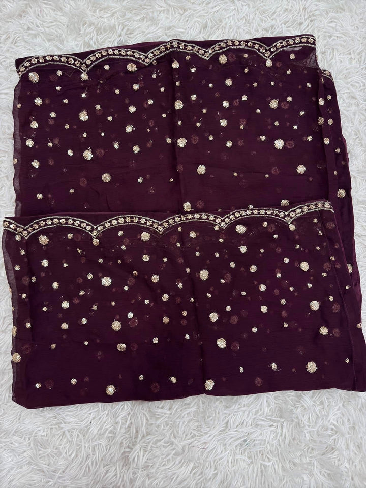 Chiffon Dupatta: Fully embroidered with zari and sequins, bordered on two sides to complete the graceful look.