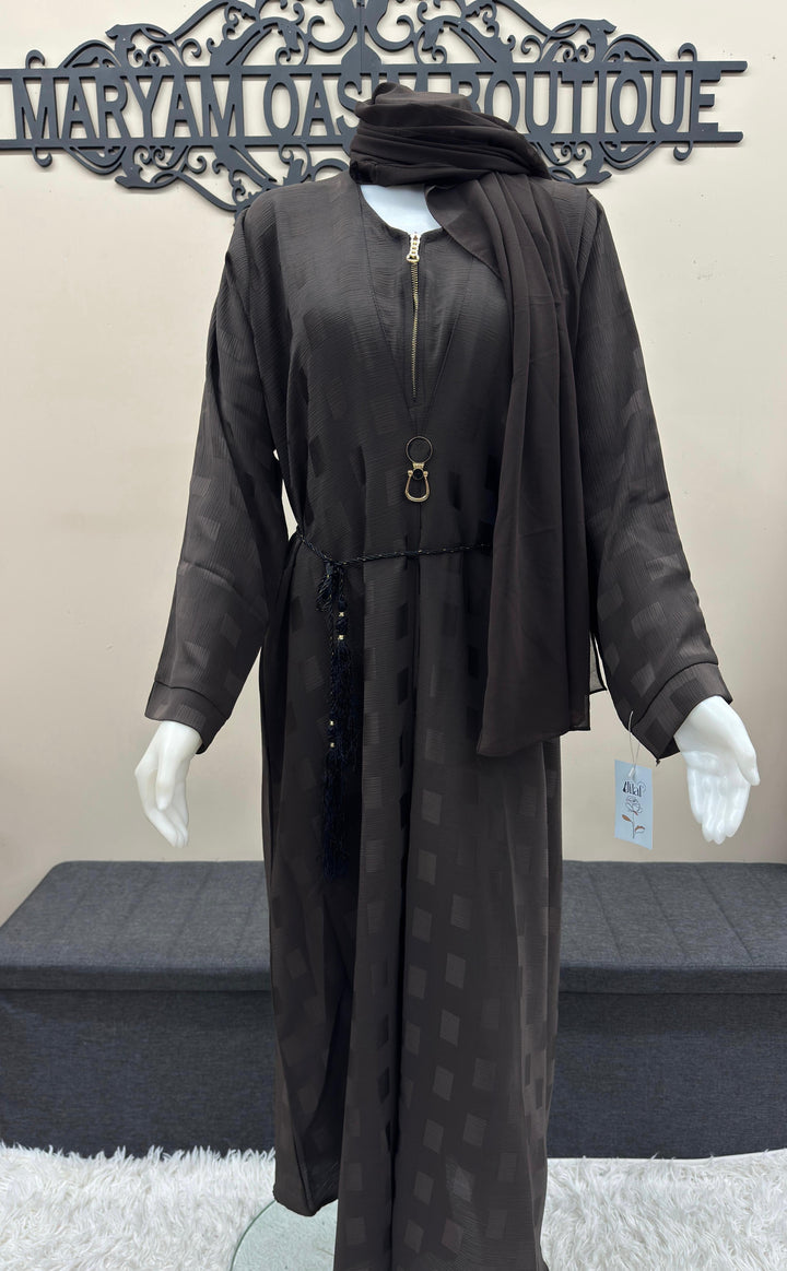 Elevate your modest fashion wardrobe with this self-print sheefon abaya. Crafted from lightweight, breathable sheefon, this abaya features a modern belt design to enhance your silhouette while maintaining comfort and elegance. Comes with a matching scarf, perfect for a complete coordinated look. Ideal for daily wear, casual outings, or special occasions, this versatile abaya combines style, comfort, and modesty effortlessly. Available in multiple colors to suit every mood and preference.