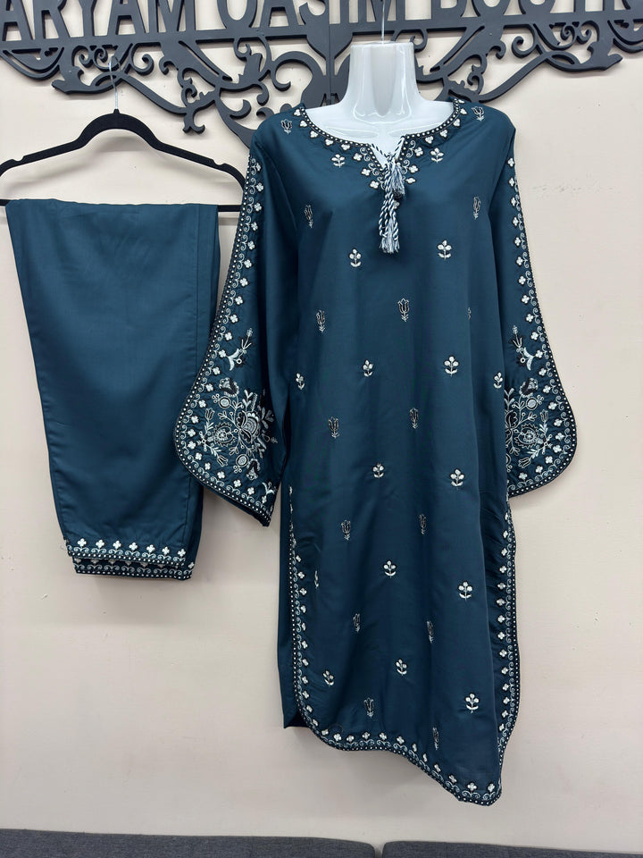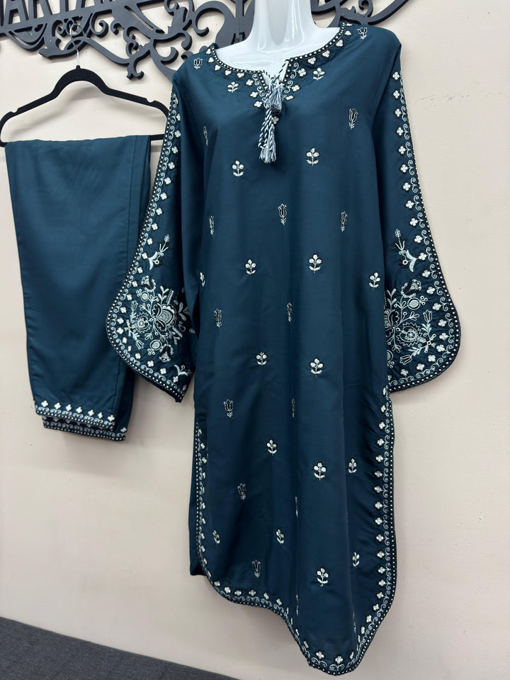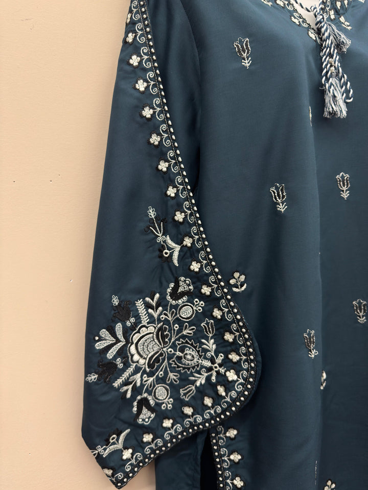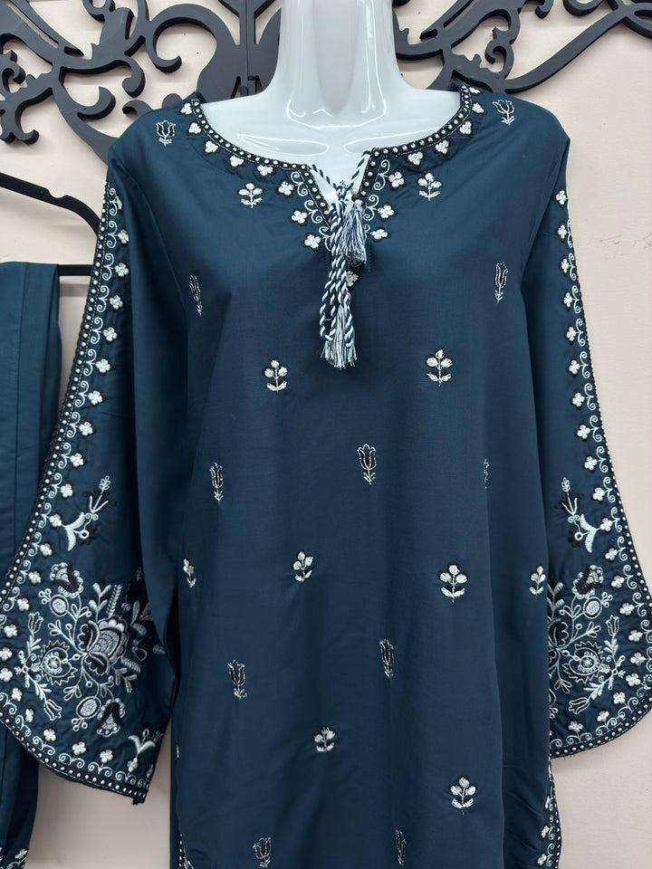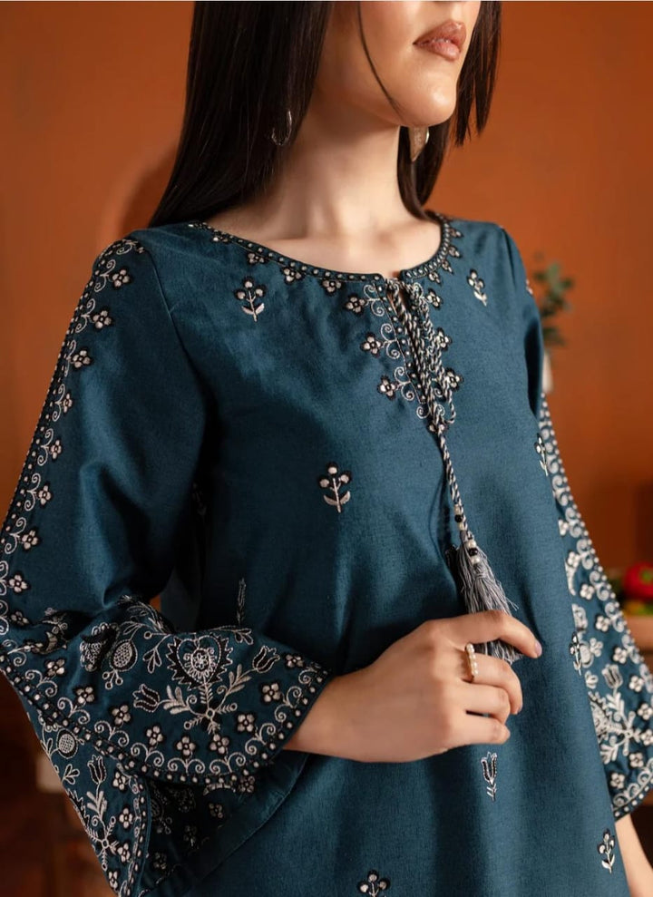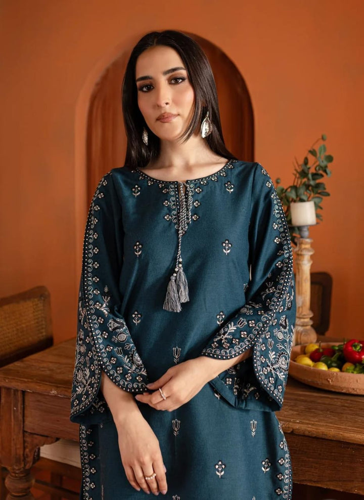 Perfect for Eid, family gatherings, or daily wear, this embroidered suit reflects Pakistani craftsmanship and adds a touch of cultural sophistication to your wardrobe.