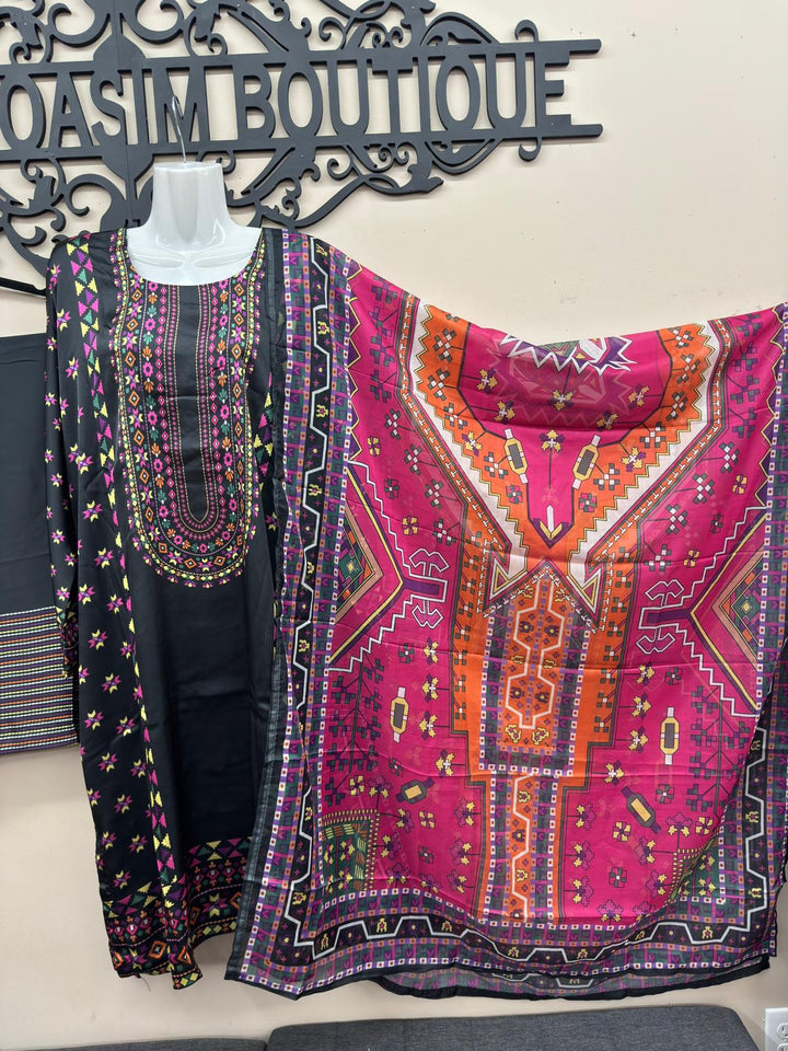 Discover elegance with this premium 3-piece Erum Eman silk printed outfit, designed for women who love classy prints, soft fabric, and premium stitching. Made with smooth and breathable Erum Eman silk, this suit includes a beautifully printed shirt, matching silk palazzo trousers, and a lightweight chiffon printed dupatta — creating a stunning look for any occasion.