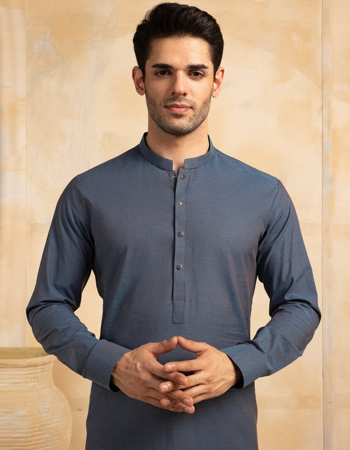 Designed to perfection, this Blue Cotton Kurta Trouser is a must-have for every one’s wardrobe. Its classic style and versatility make it suitable for a variety of occasions, ensuring that you always looks stylish and sophisticated.