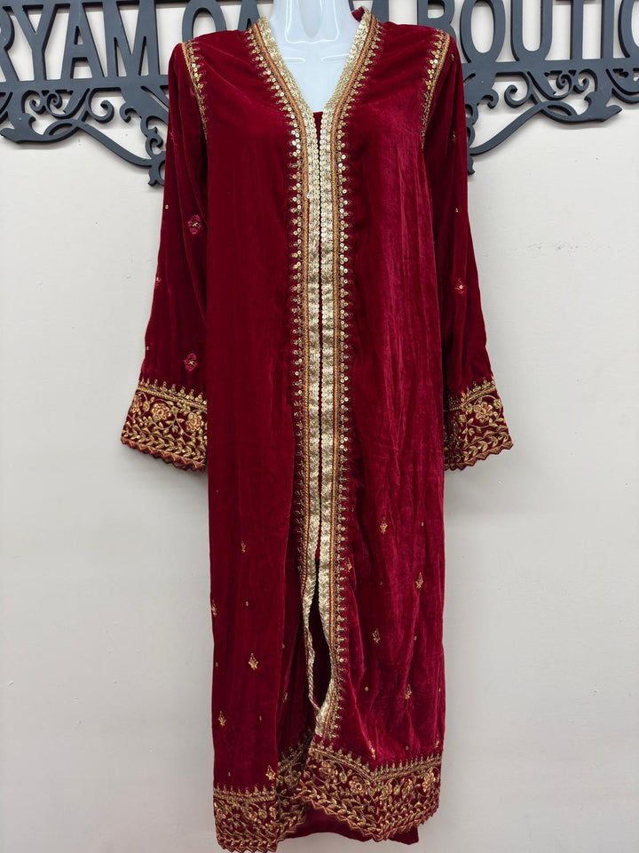 Make a bold and elegant statement with this Red Velvet 3-Piece Stitched Outfit, a perfect blend of luxury and sophistication. Crafted from premium velvet fabric, this outfit features a soft, rich texture that delivers both warmth and grandeur — ideal for winter festivities and formal occasions.