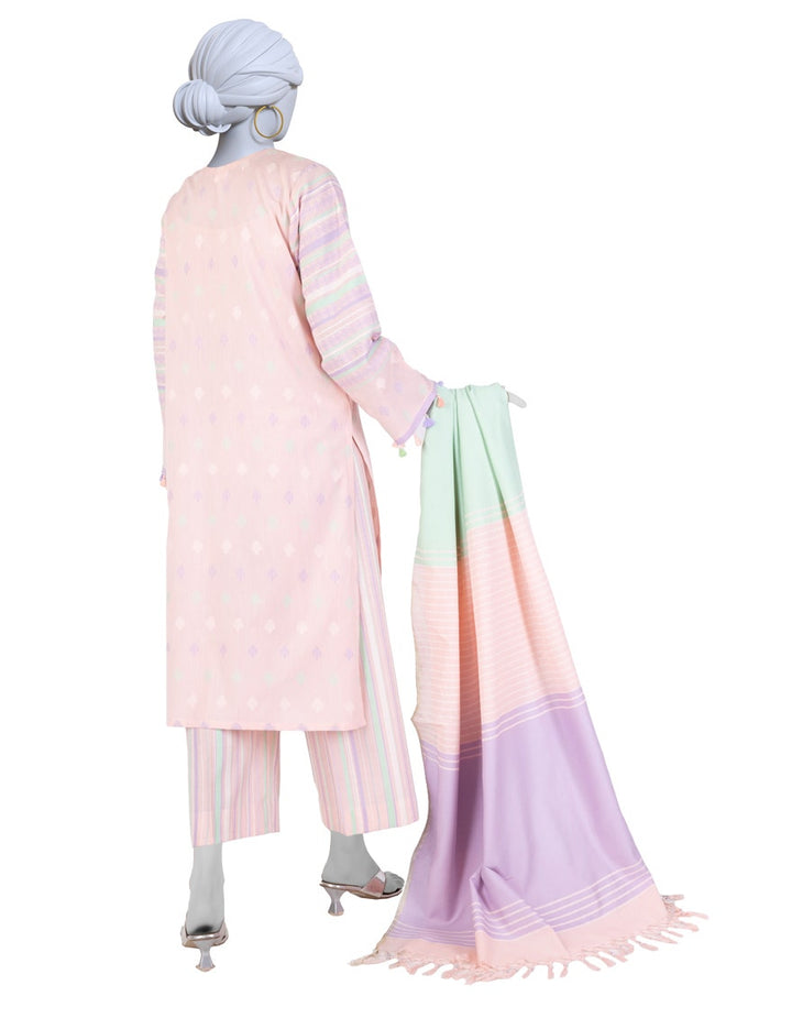 Step into summer elegance with the J. Pink Jacquard Embroidered 3 Piece Stitched by Maryam Qasim, a stunning creation from Junaid Jamshed’s Lawn Collection 2025. This luxurious handwoven jacquard outfit is crafted to perfection, combining refined embroidery, premium texture, and breathable comfort — making it ideal for warm-weather sophistication.
