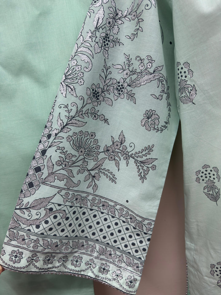 Original J. 3-Piece Block Print Lawn Suit | Custom Stitching with Gota Lace