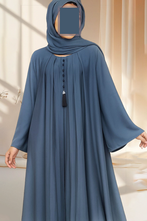 Add a touch of elegance to your wardrobe with this pleated one-piece abaya, designed with a statement decorative button and tassel detail on the front. The clean pleated lines and modest silhouette offer a flattering flow, while the tassel adds a hint of contemporary charm to the traditional abaya design.