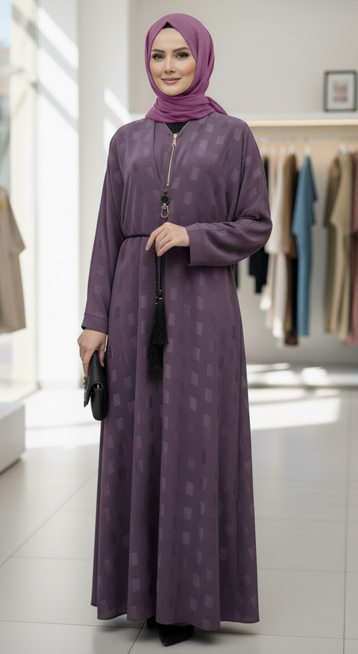 Elevate your modest fashion wardrobe with this self-print sheefon abaya. Crafted from lightweight, breathable sheefon, this abaya features a modern belt design to enhance your silhouette while maintaining comfort and elegance. Comes with a matching scarf, perfect for a complete coordinated look. Ideal for daily wear, casual outings, or special occasions, this versatile abaya combines style, comfort, and modesty effortlessly. Available in multiple colors to suit every mood and preference.